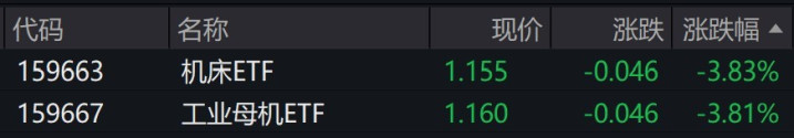 受盘面影响,跟踪中证机床指数的ETF跌超3%。